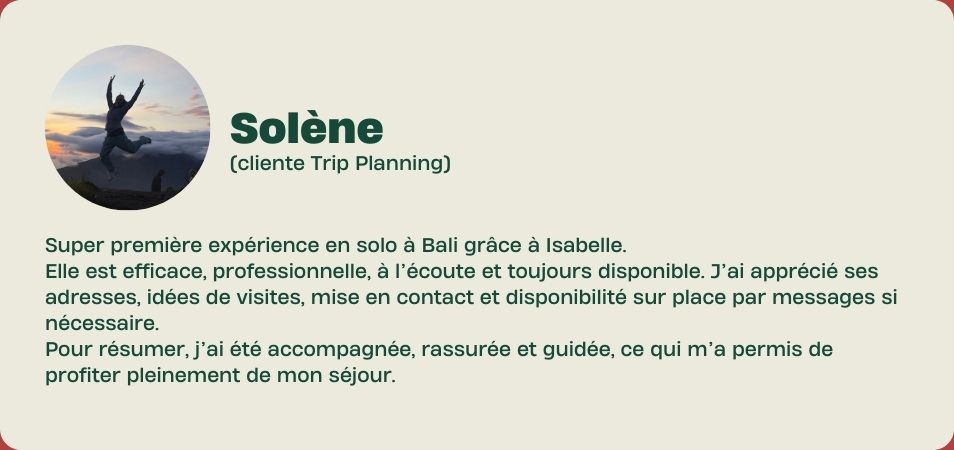 Pour un itinéraire complet ou juste pour une activité, ils m’ont fait confiance lors de leur voyage à Bali !
